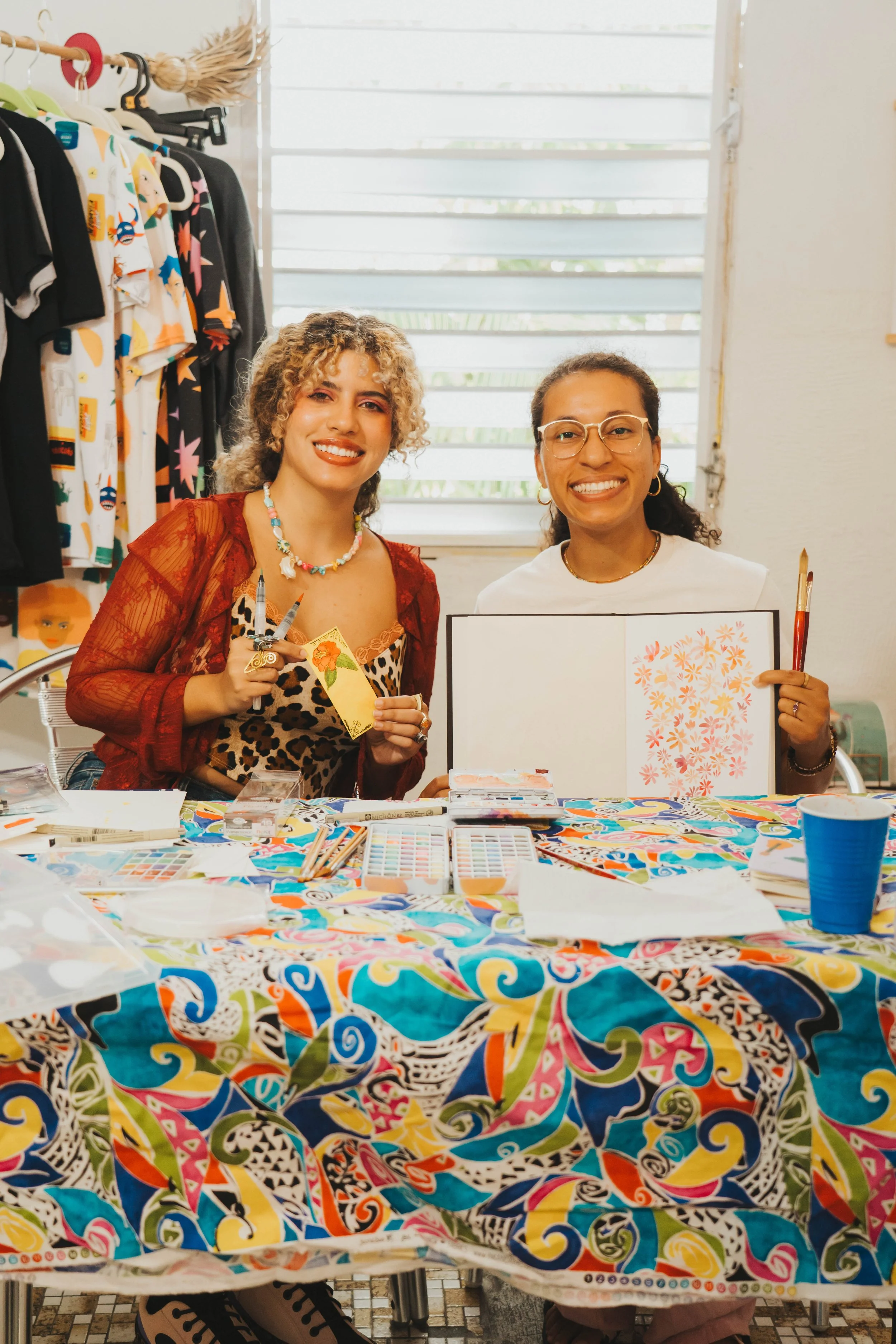 I met Emmalynn González of E.G. Atelier while I was on vacation in Rincón, Puerto Rico, with my husband, Imani Lenz. I was exploring the vendors at the Rincón Art Walk in La Marketa, and I was immediately drawn to Emmalynn’s work: bold, colorful, magnetic, and infused with inspirational phrases in Spanish that felt both grounding and expansive.
